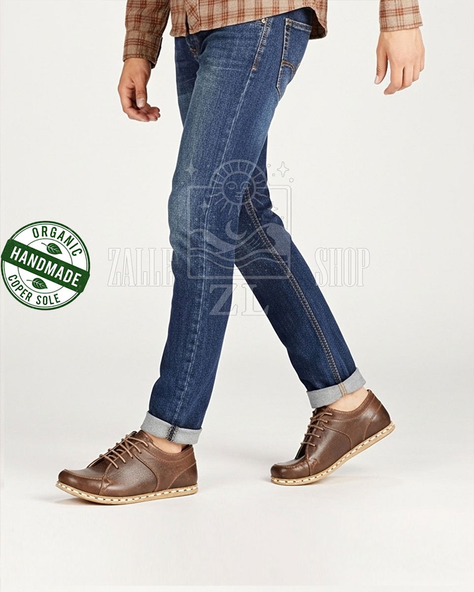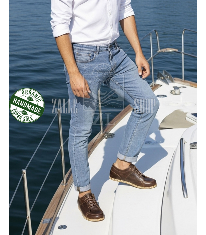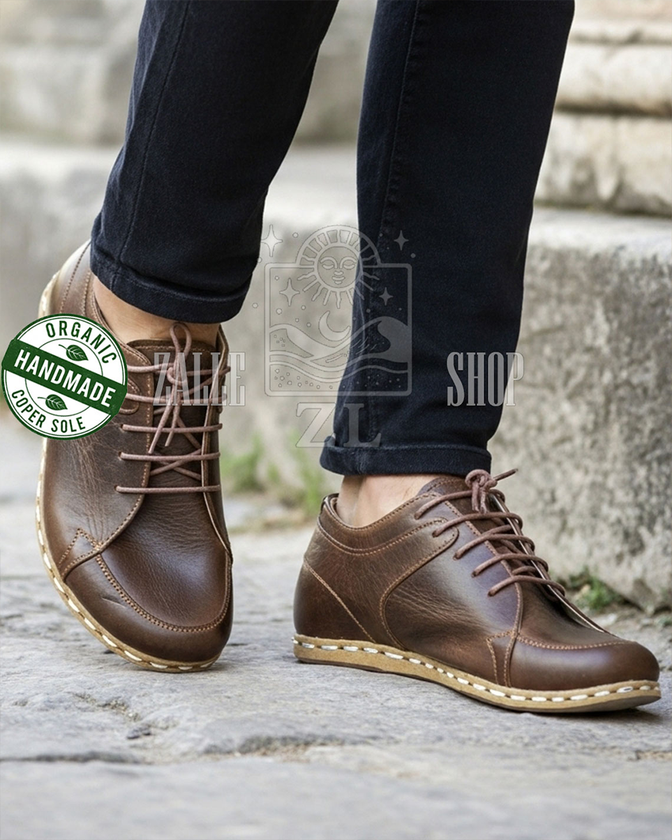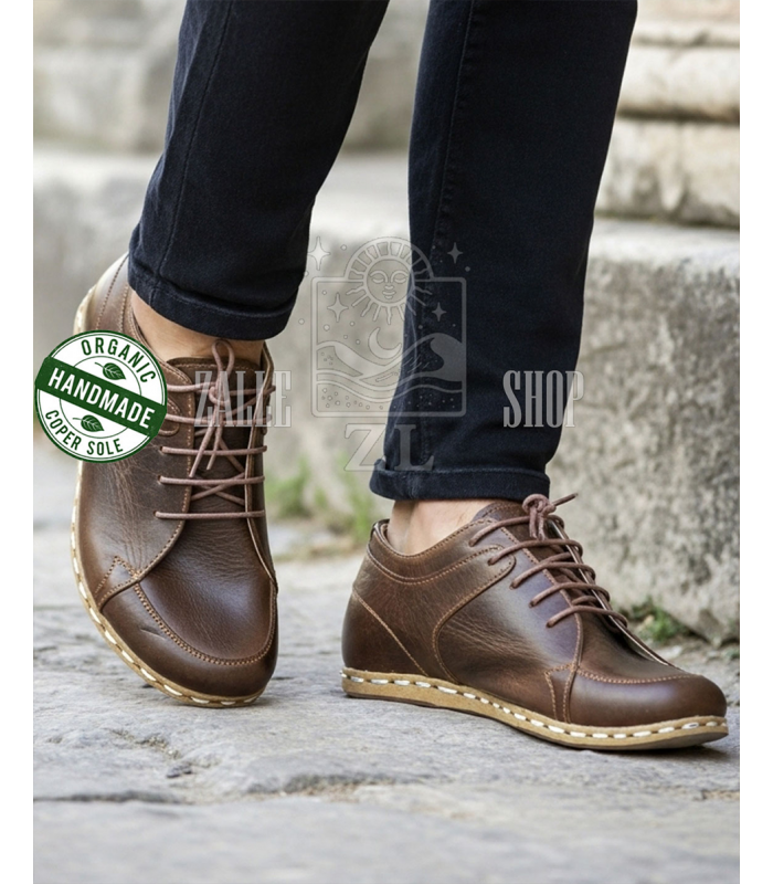 Men Barefoot Handmade Sneakers NB Brown organic leather shoes