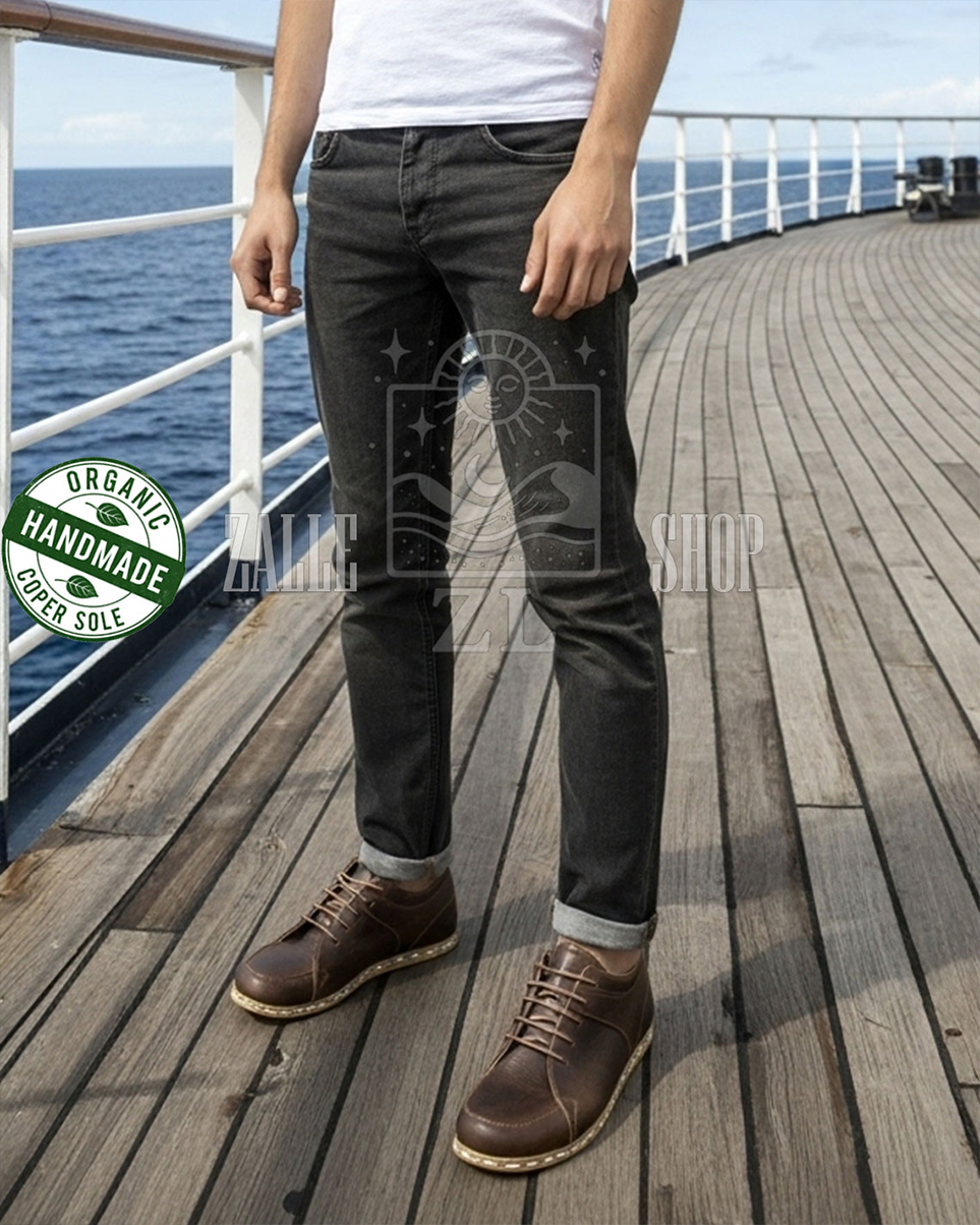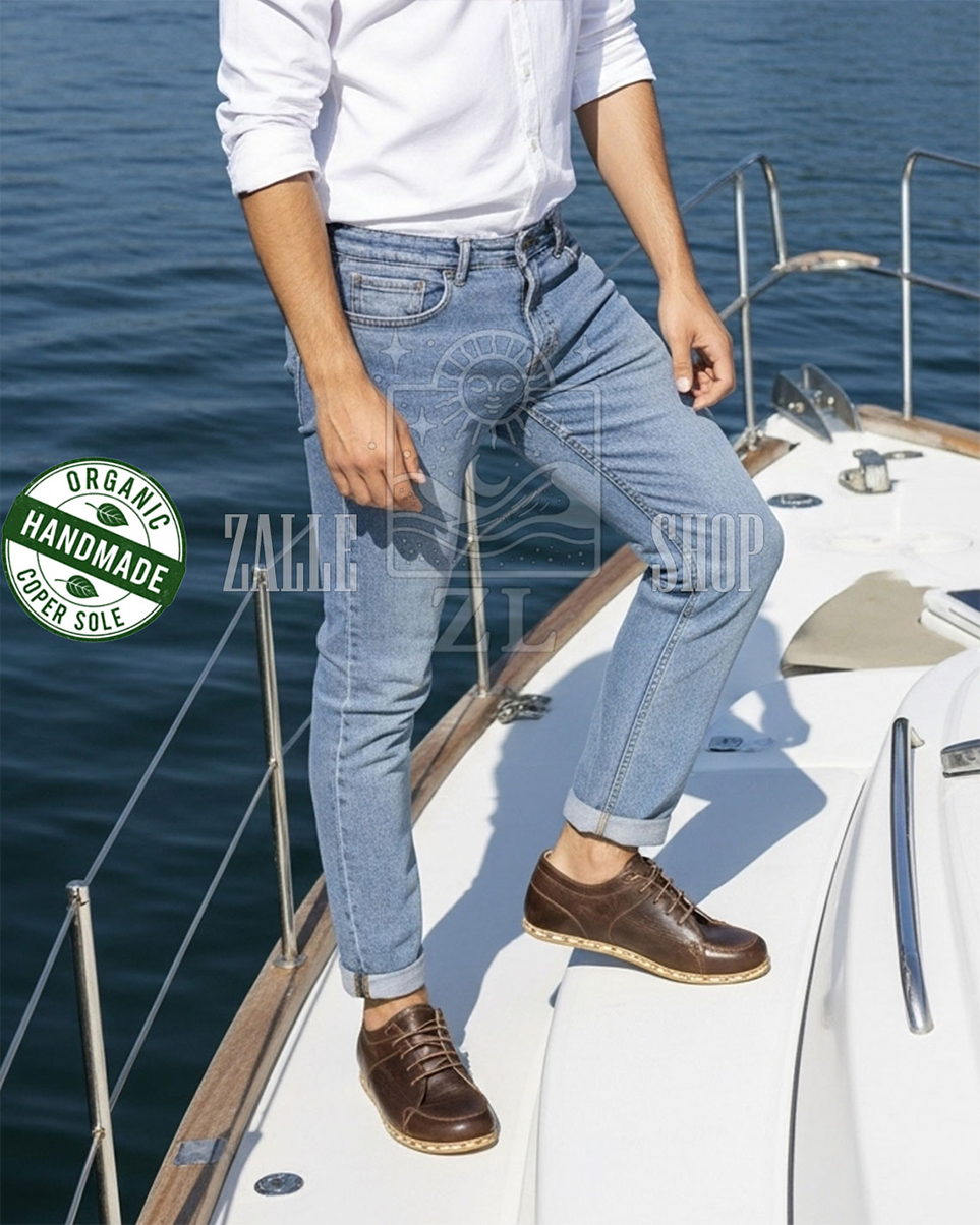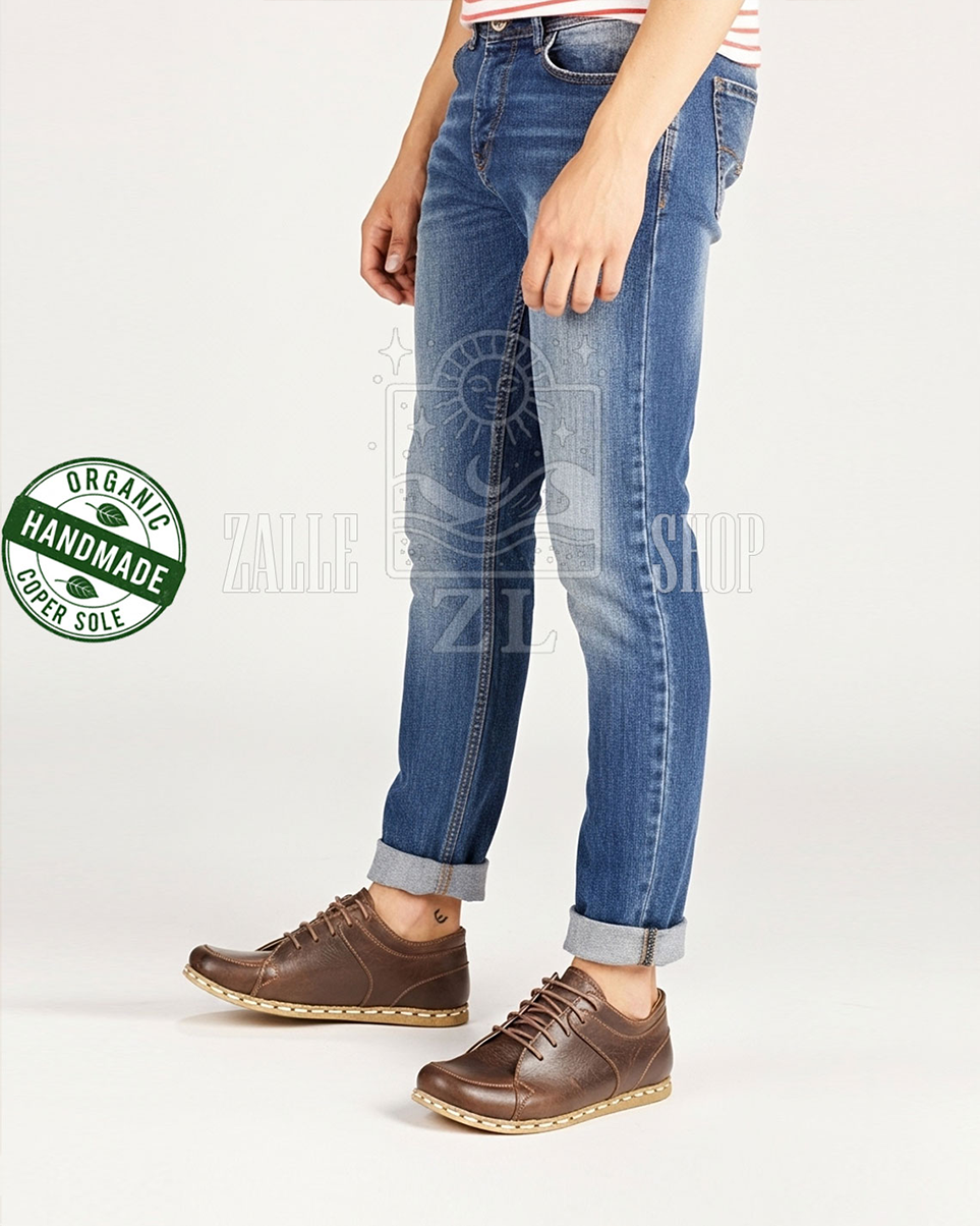 Men Barefoot Handmade Sneakers NB Brown organic leather shoes