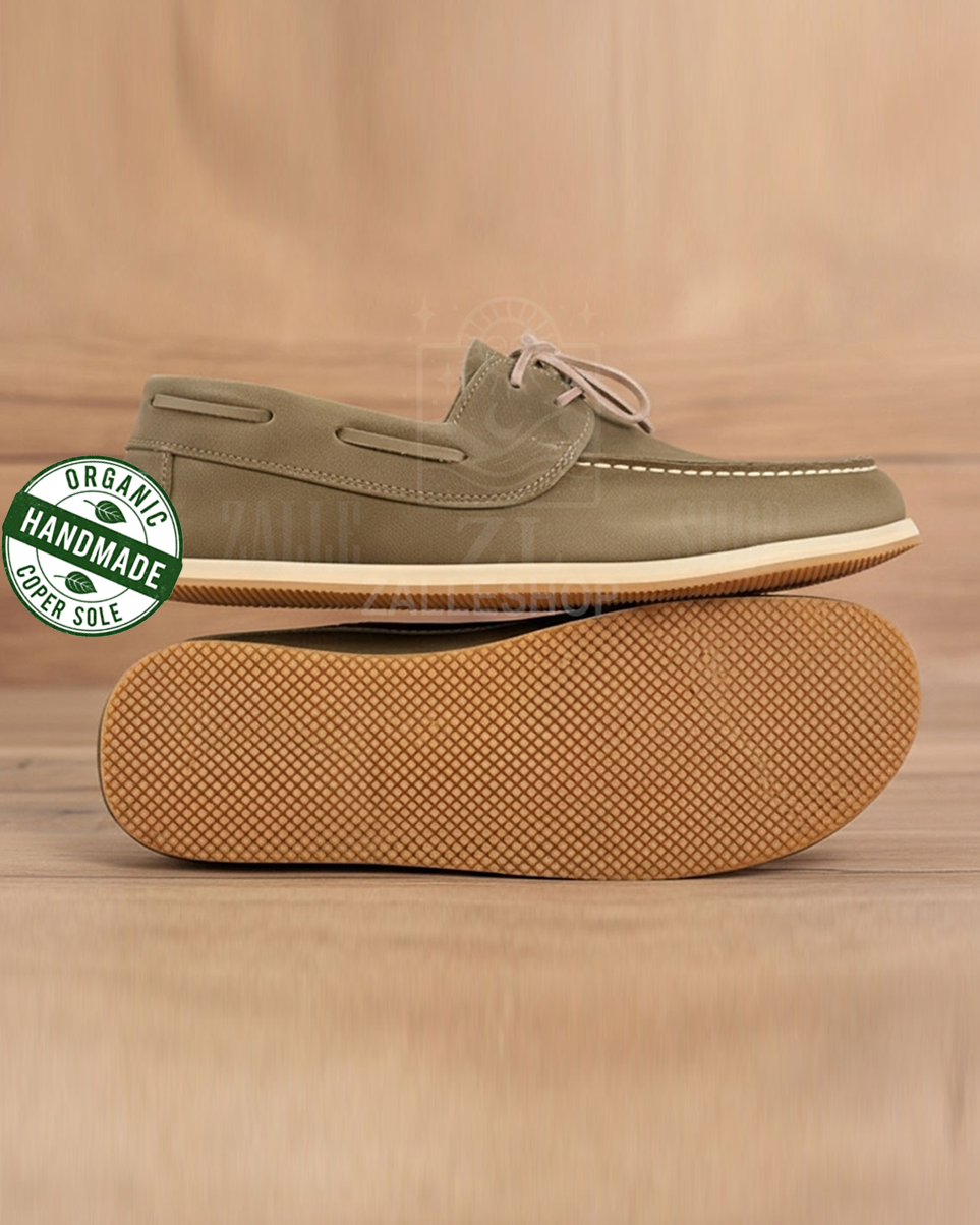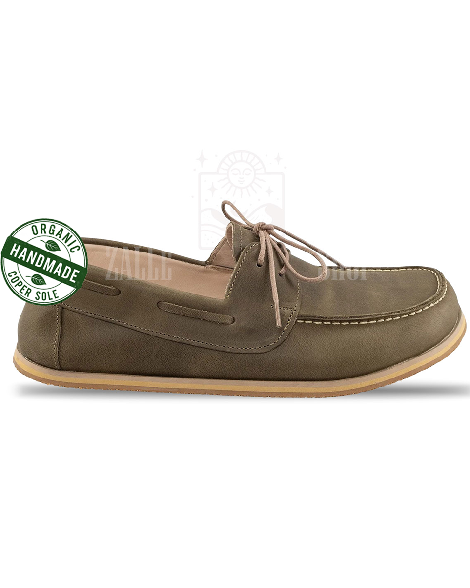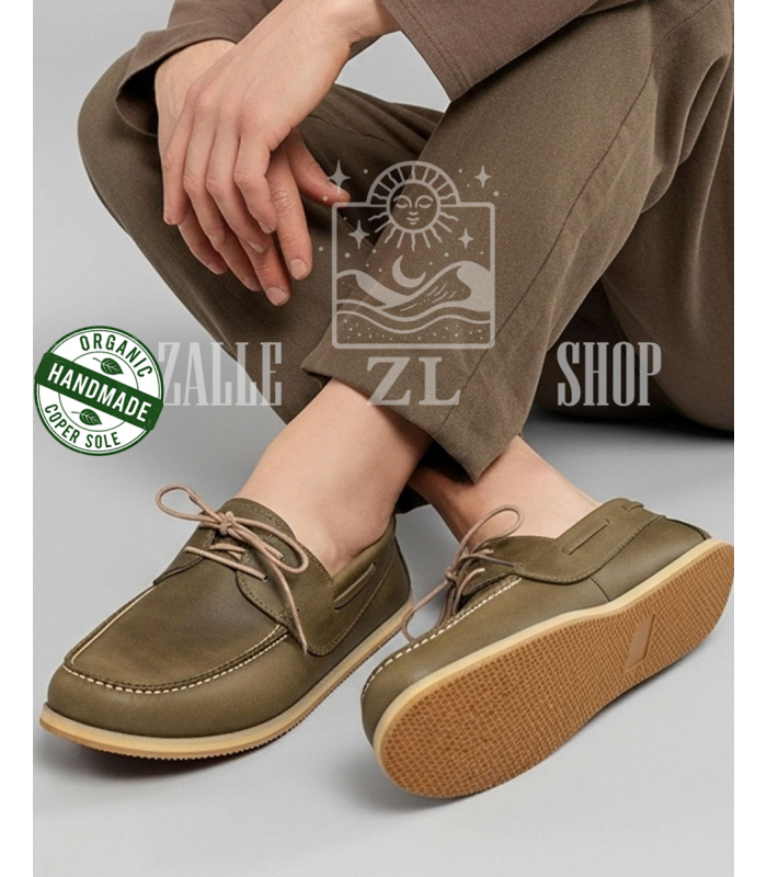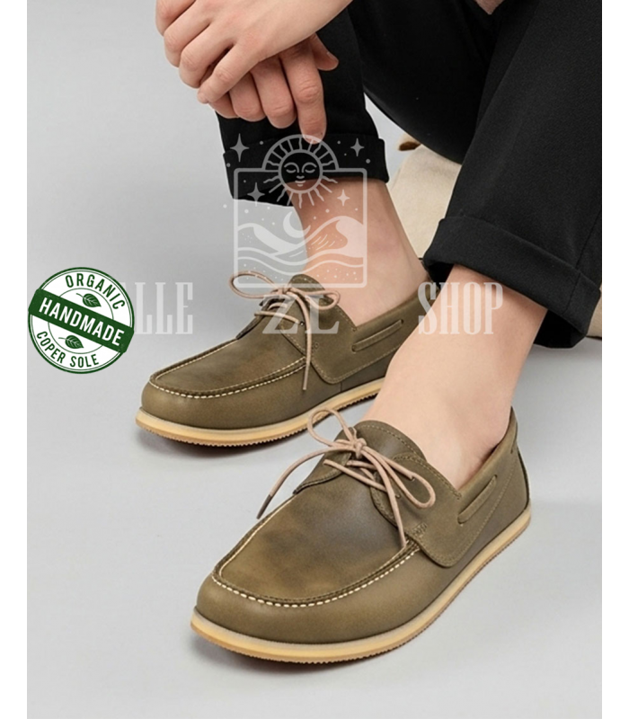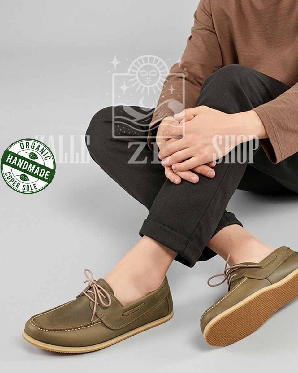 Take steps in harmony with the world with its hand-stitched, 100% organic leather and copper-based design.