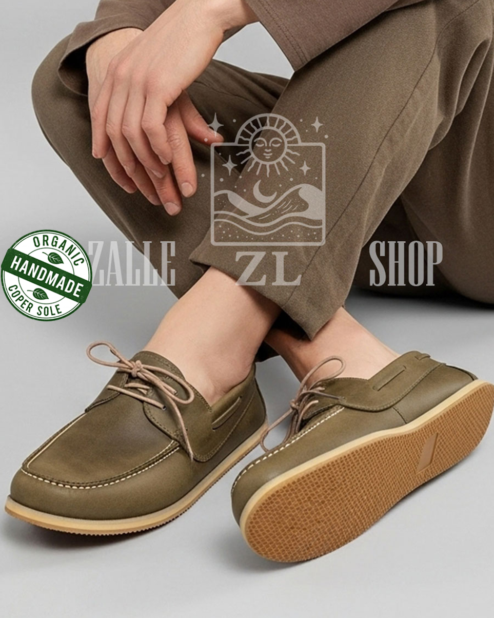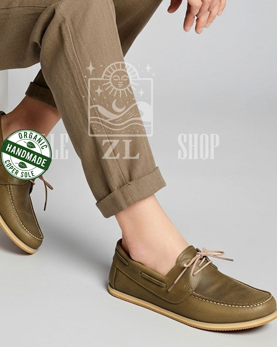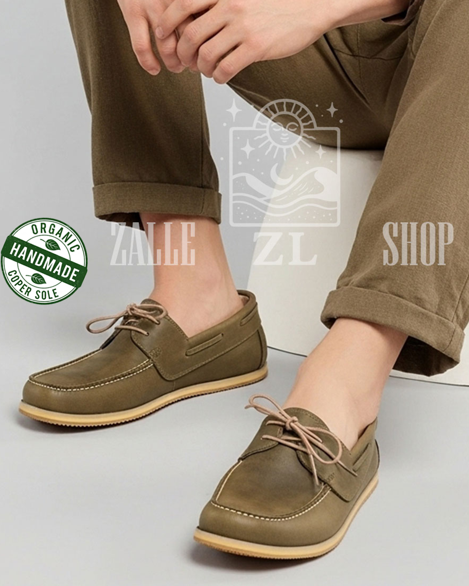 Take steps in harmony with the world with its hand-stitched, 100% organic leather and copper-based design.