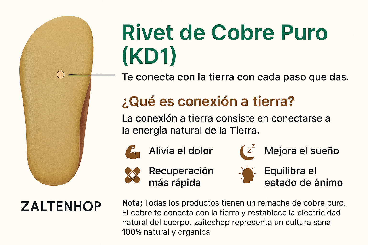 Camina como la naturaleza lo concibió. Postura equilibrada, sin dolor de pies a espalda, mientras que nuestra conexión a tierra de cobre reduce la inflamación y te proporciona energía y tranquilidad durante todo el día.