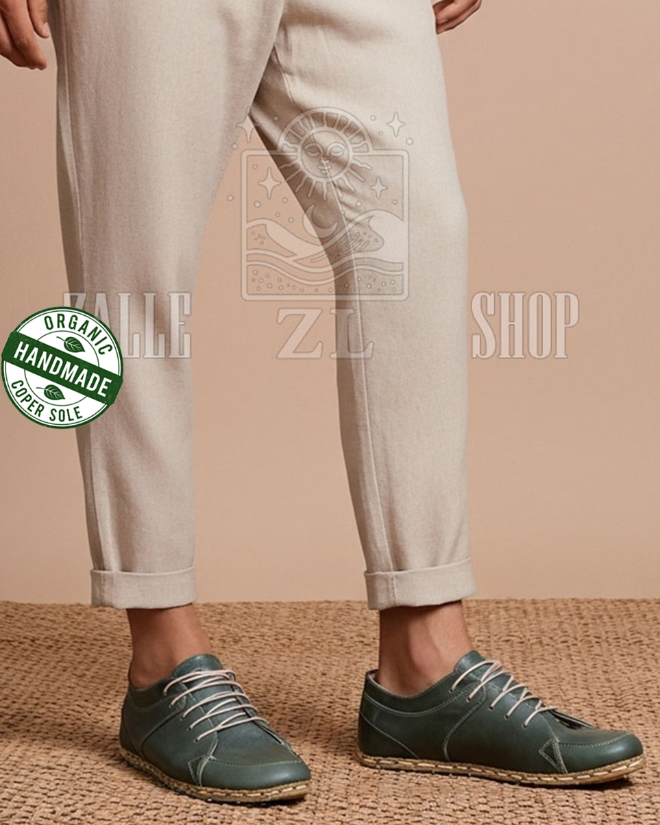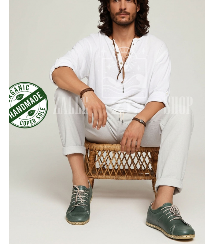 Take steps in harmony with the world with its hand-stitched, 100% organic leather and copper-based design.
