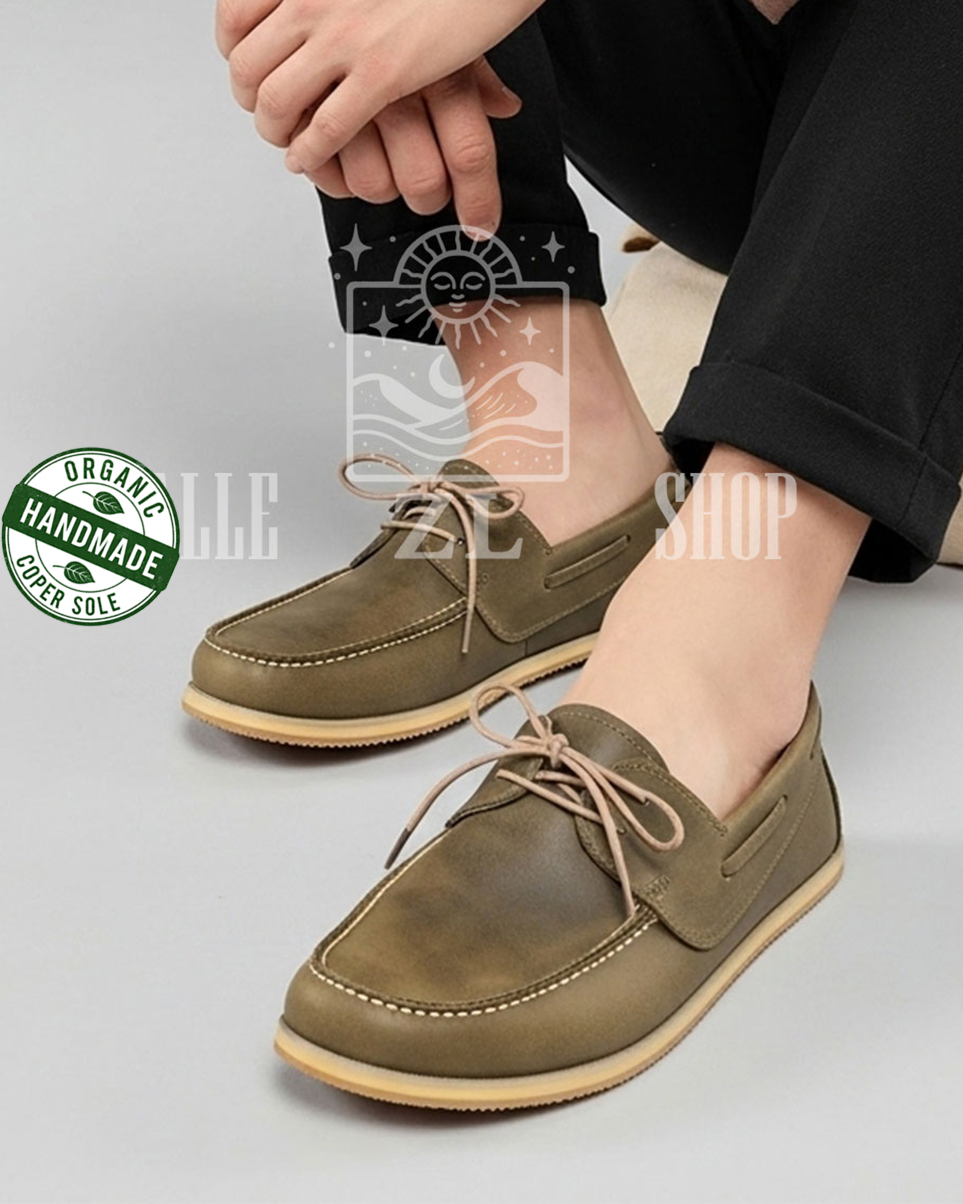 Take steps in harmony with the world with its hand-stitched, 100% organic leather and copper-based design.