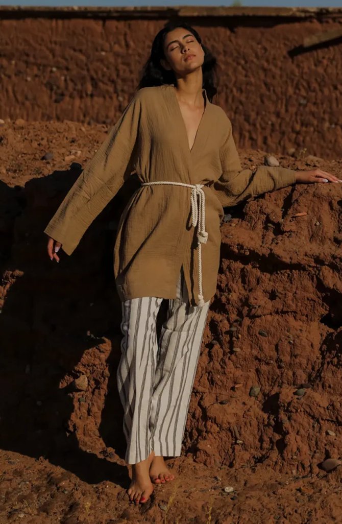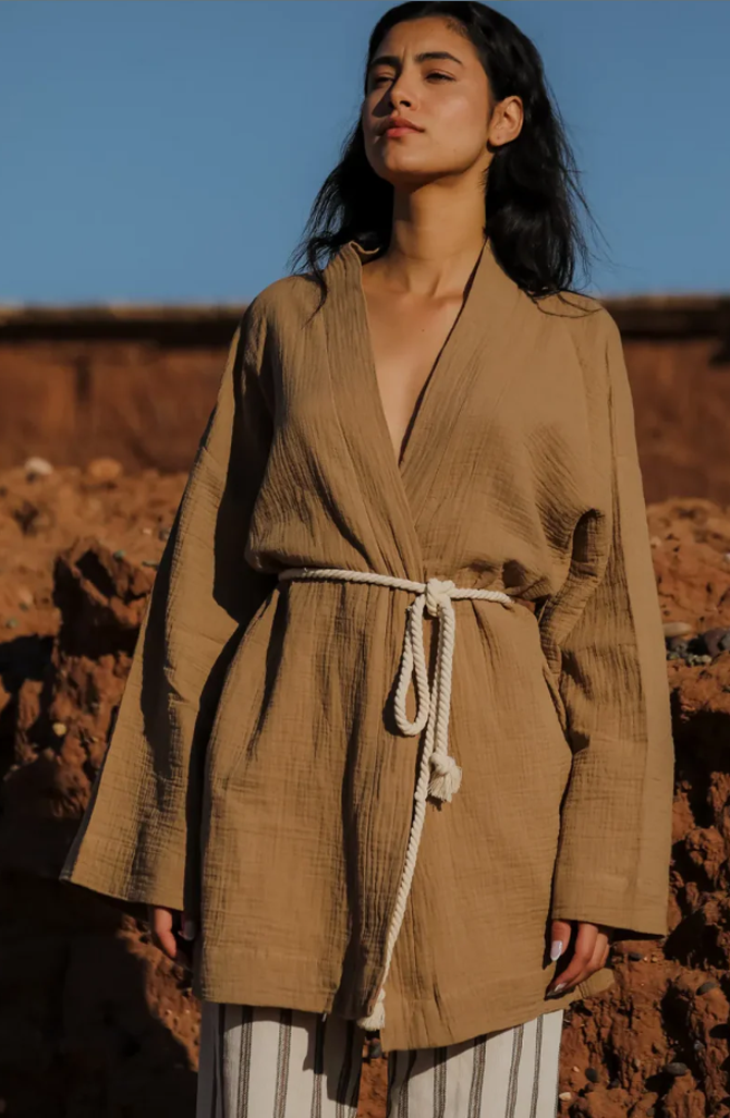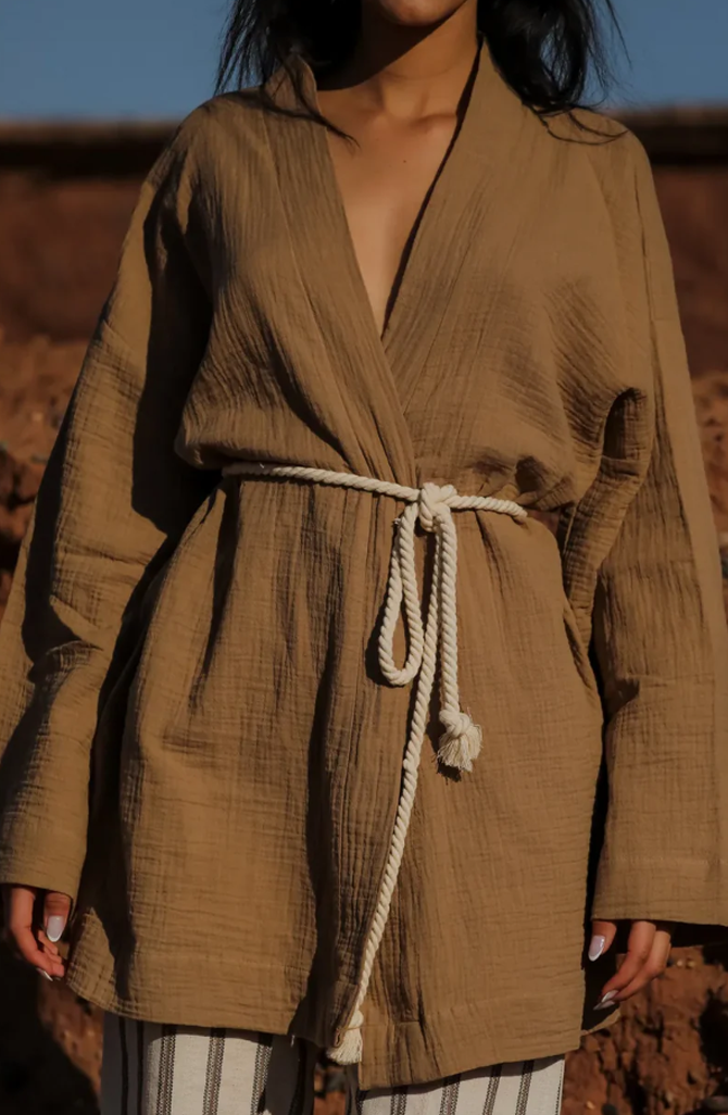 ZALLESHOP HANDMADE ORGANIC FASHION GROUP HANNA %100 Pamuk Kızıl Kahve Örgü Detaylı ElbiseWOMEN'S CLOTHING